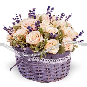 Лесная магия - корзина с кремовыми розами и сухоцветами