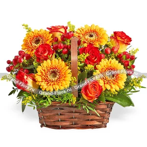 Букет оранжевых роз + хризантемы - Осенний коктейль
