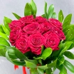25 роз: роза красная (70см) - 25 шт., рускус (или салал/ малина/фисташка) - 13 шт., упаковка, лента.